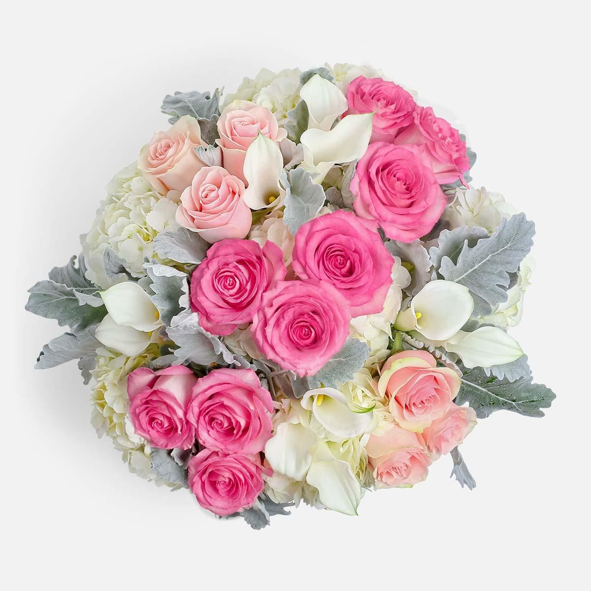 Flamingo Blush & White Calla Lily Bouquet – Elegant Rose Arrangement